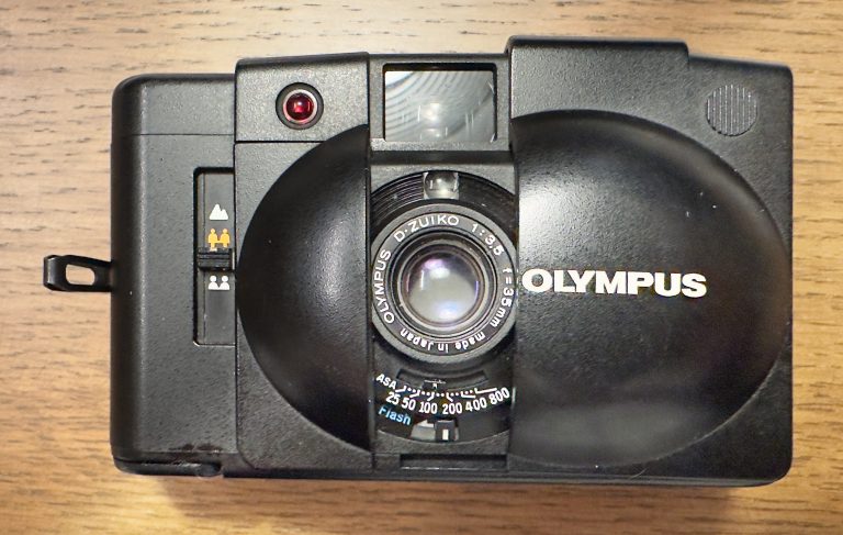 These are a range of cameras from Olympus designer Maitani Yoshihisa. They are a clam-shell design and were, according to the analogue cafe, the smallest rangefinder cameras ever made. The original XA was made from 1979 To 1985. The XA2 was a simpler version with the f/2.8 lens replaced with a f/3.5 lens and the rangefinder replaced with a 3-step zone focussing system. The XA shutter has speeds from 10 seconds to 1/500th whereas the XA2 has speeds from 2 seconds to 1/750th. The XA has an aperture priority exposure system whereas the XA2 is fully programmed. Many photographers preferred the simpler XA2 as it made a better camera for spur of the moment shots, s bit like the mobile phone today. Ken Rockwell was a fan of this particular camera which he describes as “a masterpiece of optical and industrial design”. In fact it won an industrial design award. In 1981 Japan’s Ministry Of International Trade awarded the XA2 the Good Design Grand Prix Award out of 2791 products!