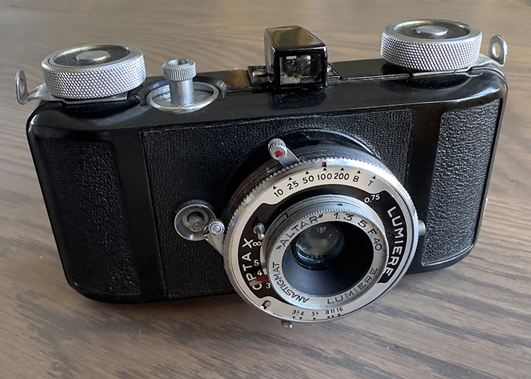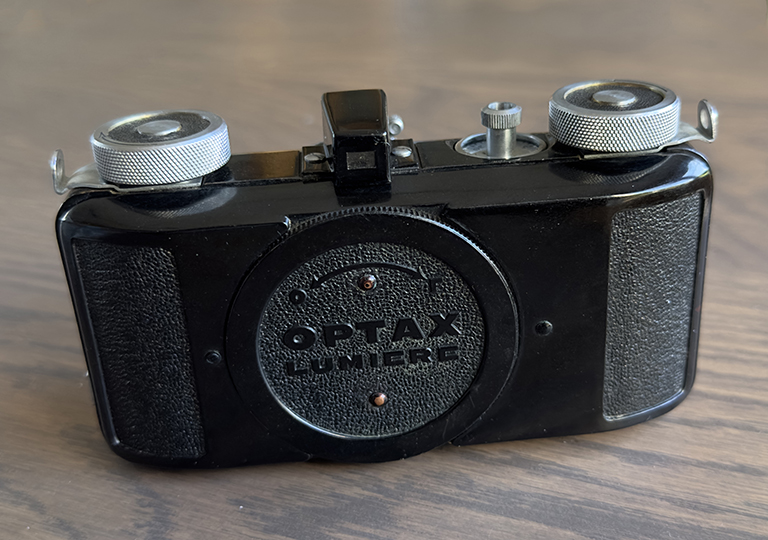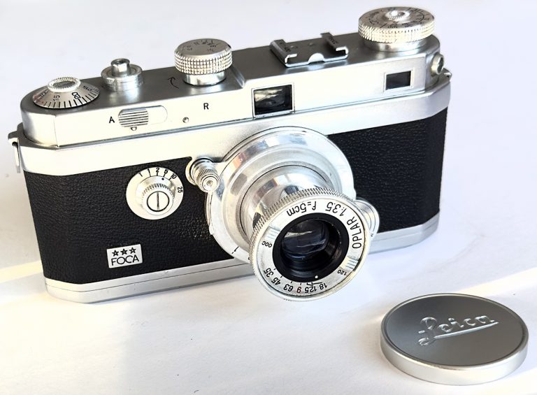 This was a French Leica “copy” made after the war. However, unlike the British Reid or the Russian FED/Zorkis it was not a copy of the Leica ll, but a unique French design.